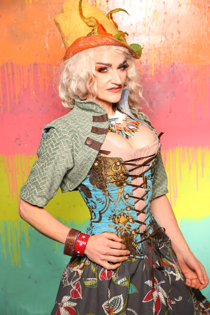 *These sleeves attach sort of like a shrug jacket. They tie in the center upper back through grommets and you pull them on like a jacket and then layer the corset over them!