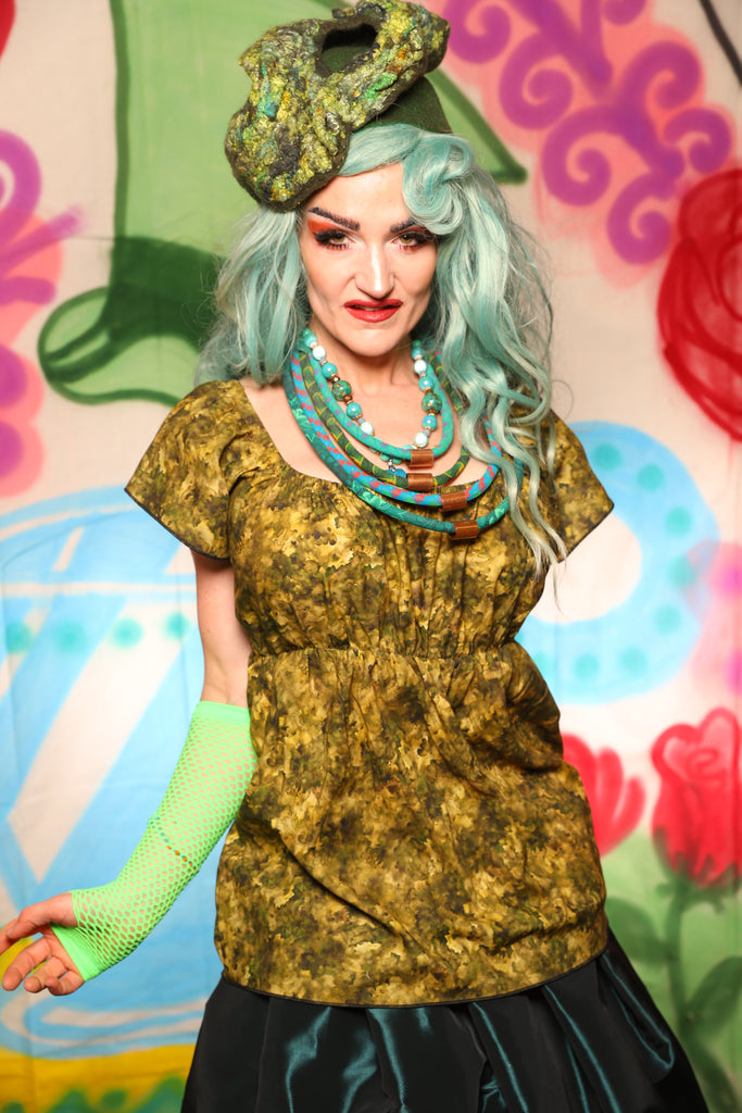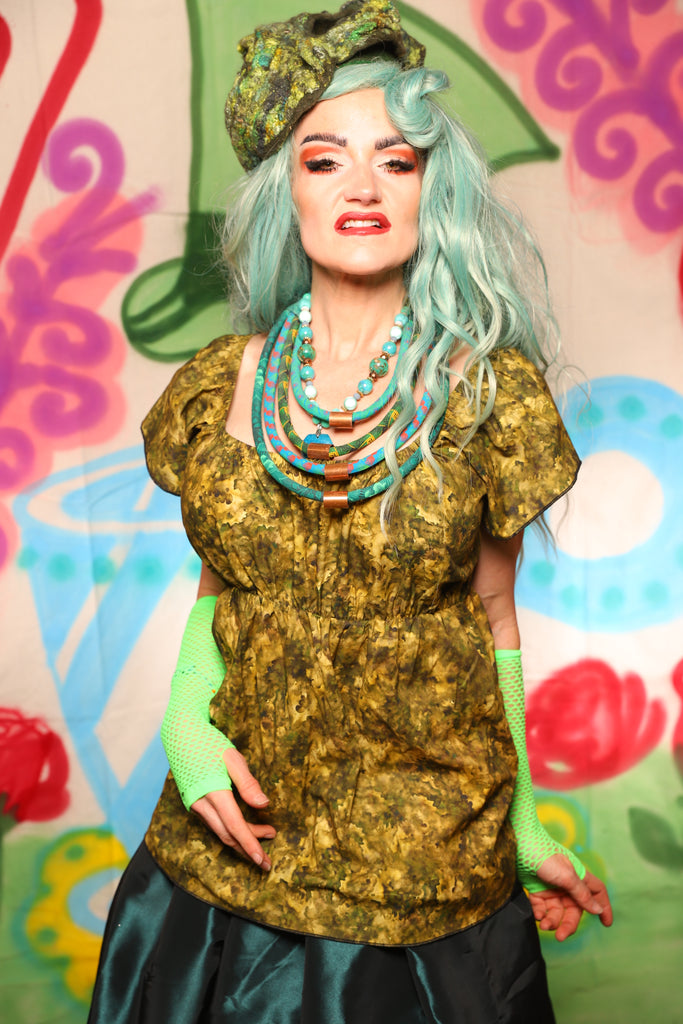 Emma Blouse in Olive Foliage Cotton - The "Twisted Tea Party" Collection