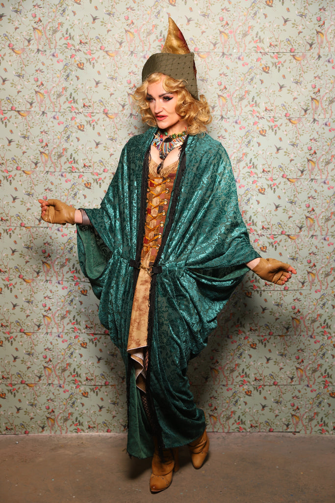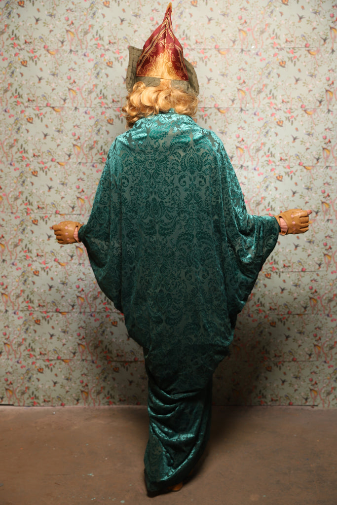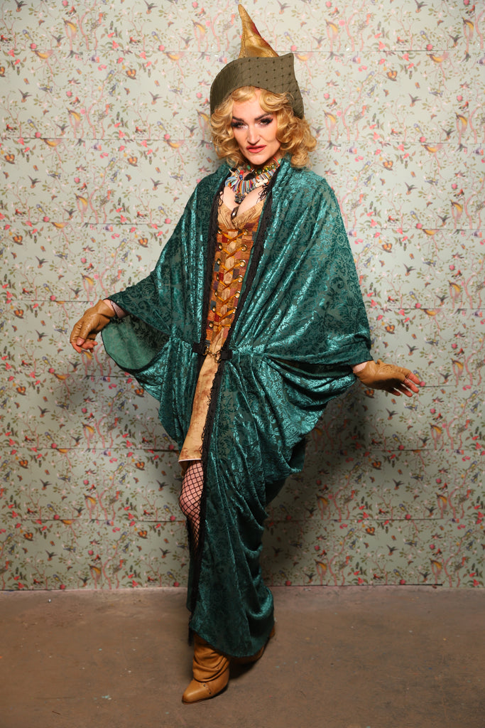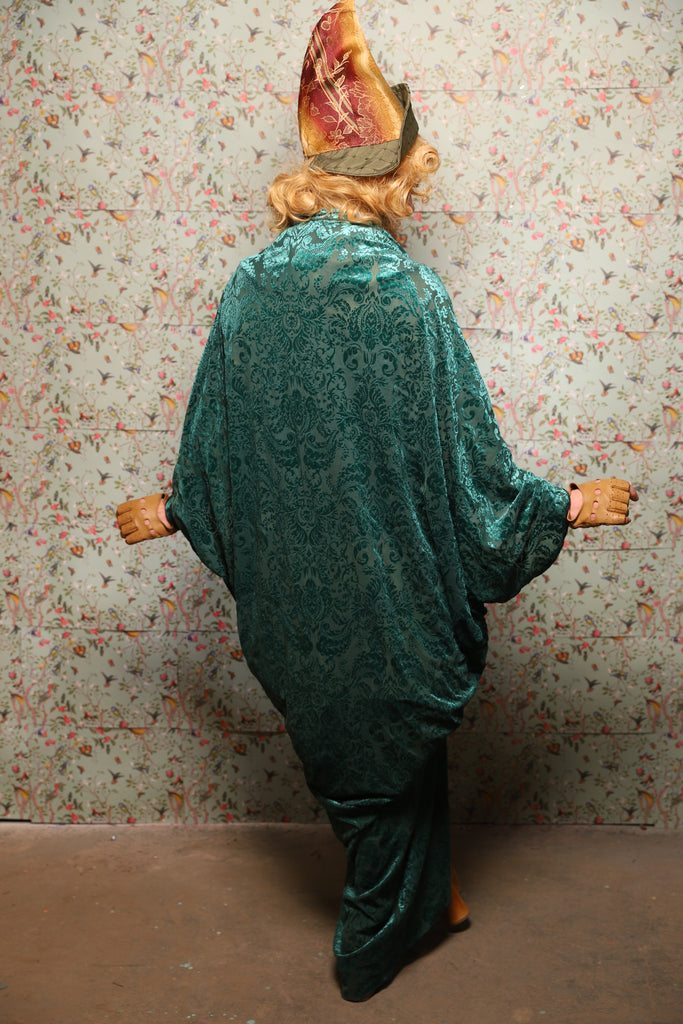 10. Cocoon Robe in Teal Burnout Stretch Velvet Damask - March of the Ides Collection