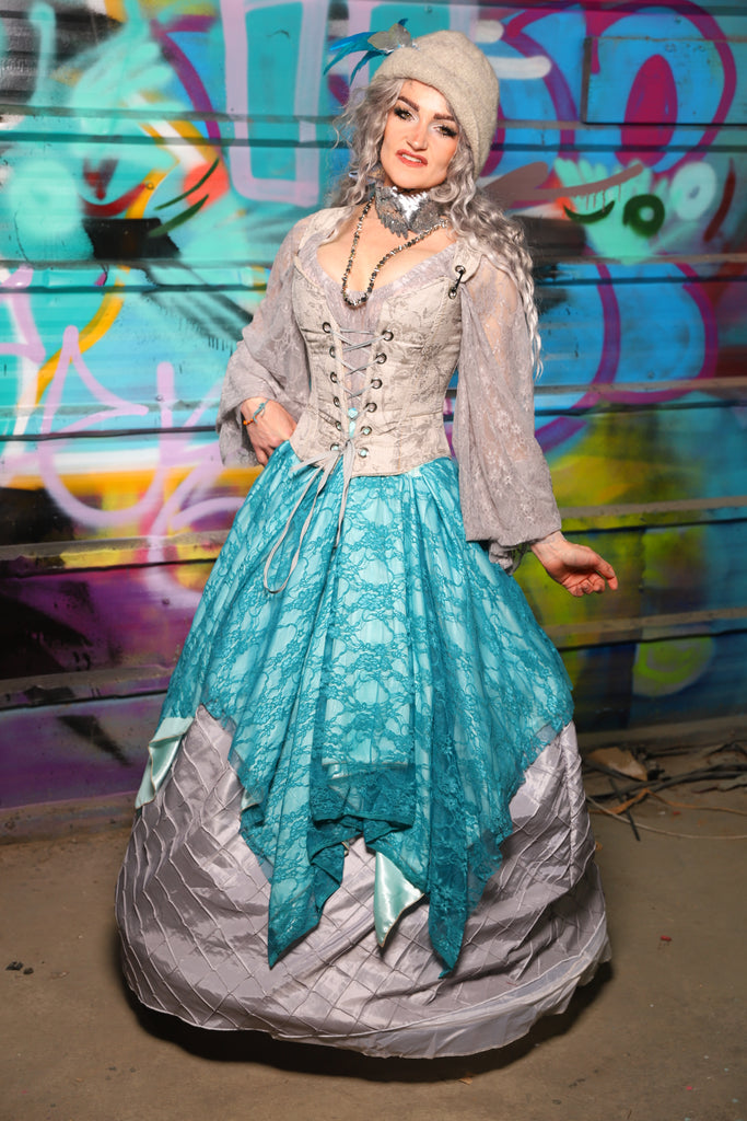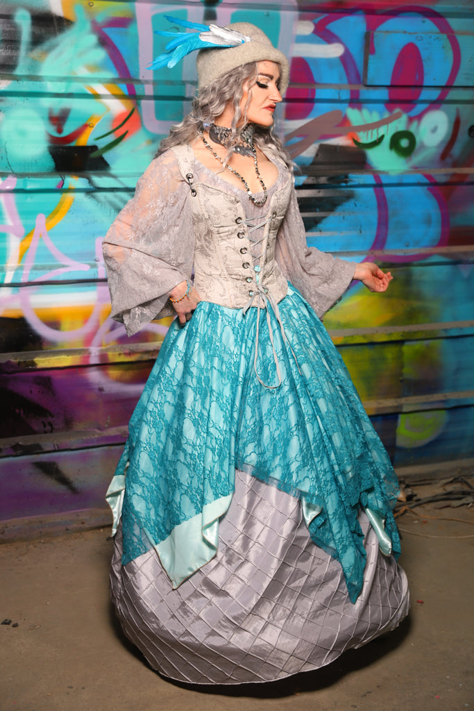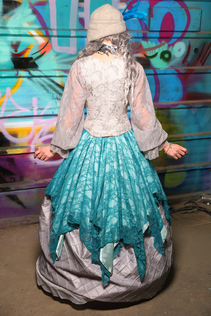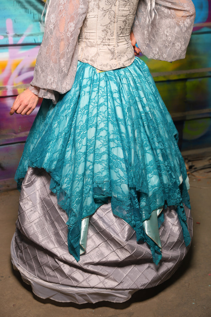 25. Double Layer Fairy Skirt in Frostwater Satin w/Teal Lace Overlay - The "Love at Frost Sight" Collection