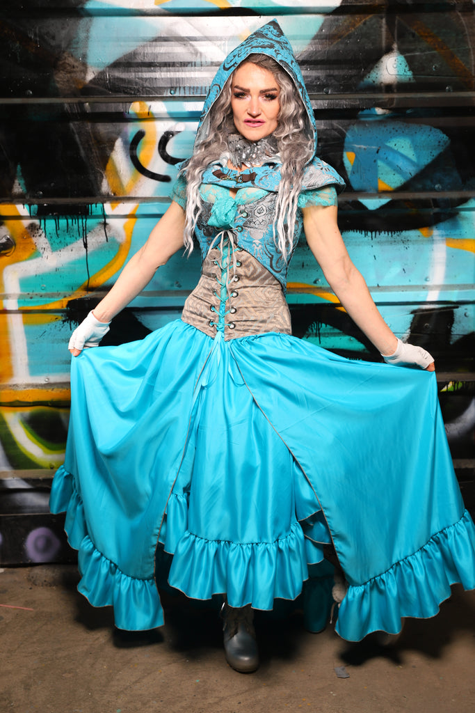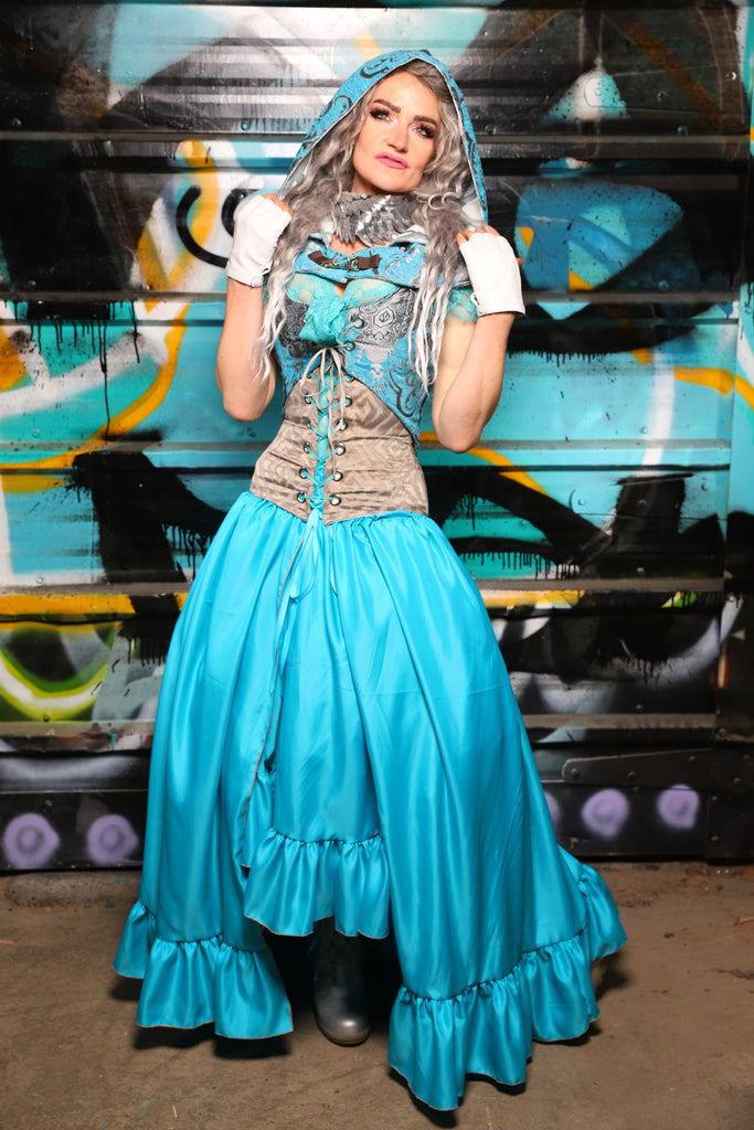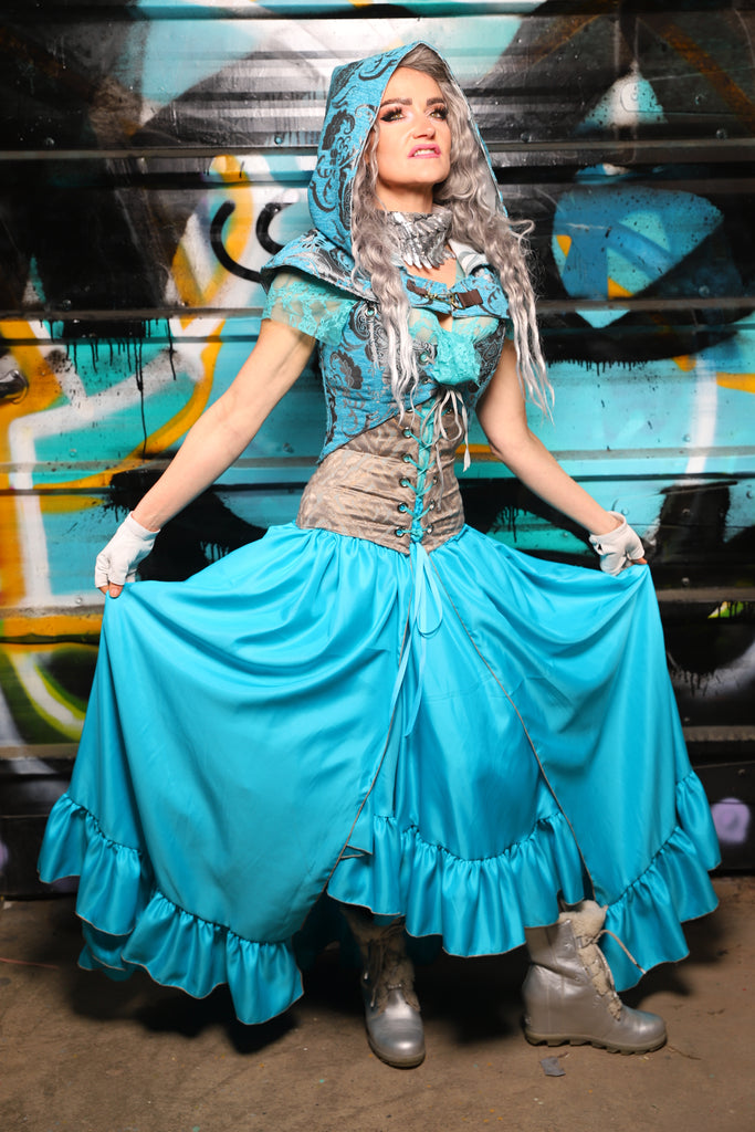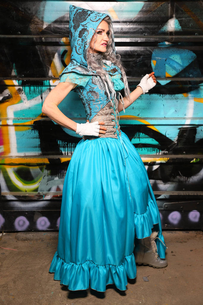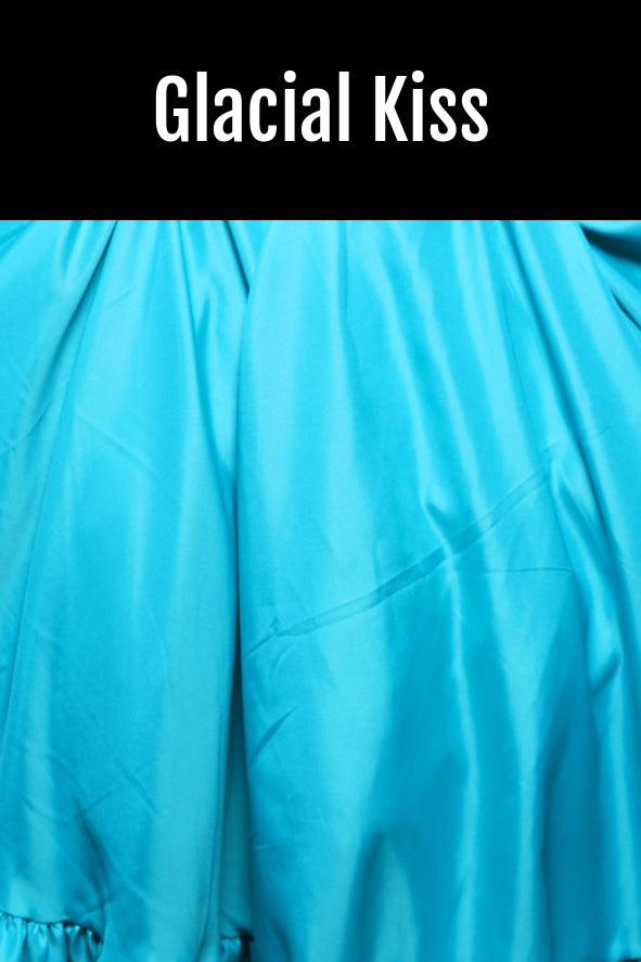 60. Straight Front Skirt w/ruffle in Glacial Kiss/Straight Front Skirt w/ruffle in Dark Teal Satin - The "Love at Frost Sight" Collection
