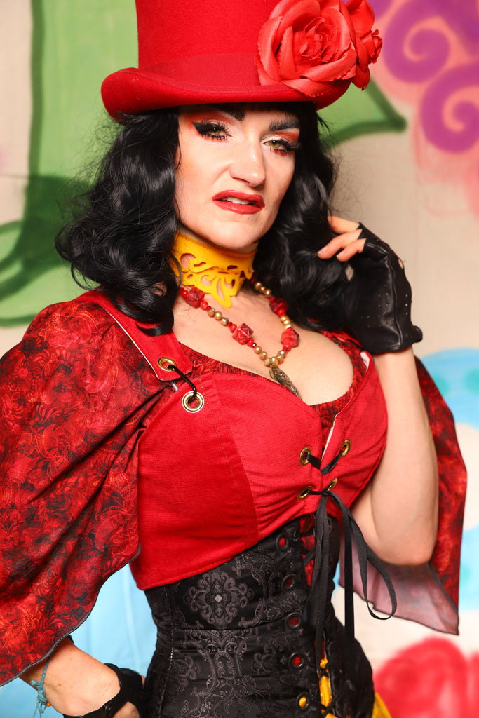 Cropped Courtier in Red Upholstery *PLEASE order by BUST Measurement, NOT waist!* - The "Twisted Tea Party" Collection