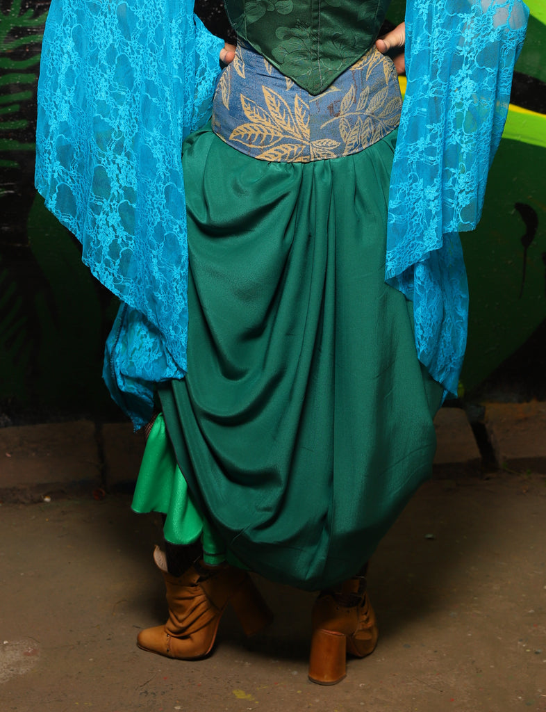 Swoon Skirt in Green Reverse Crepe Satin - "Siren's Shanties" Collection