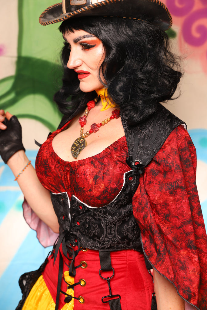 Duality Cropped Corset w/Back Lacing in Black Filigree Jacquard *pockets sold separately* - The "Twisted Tea Party" Collection