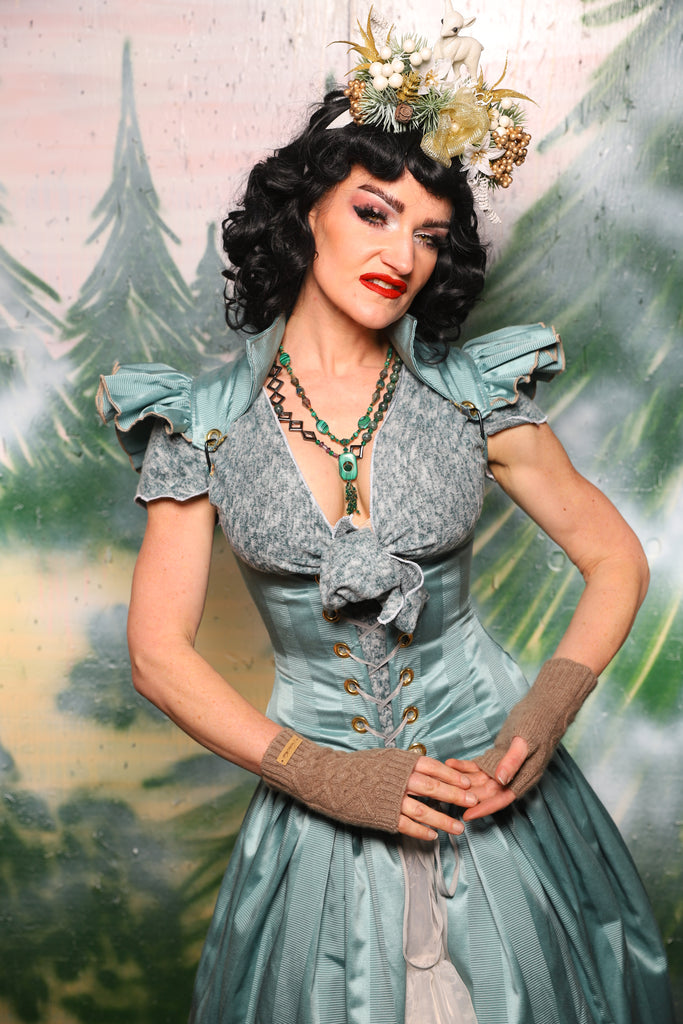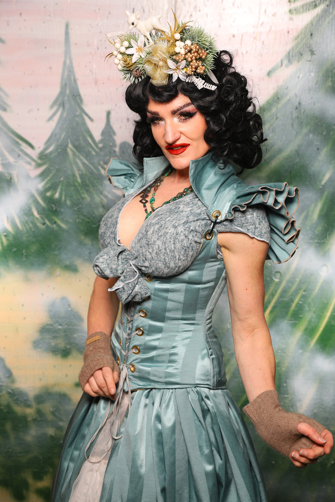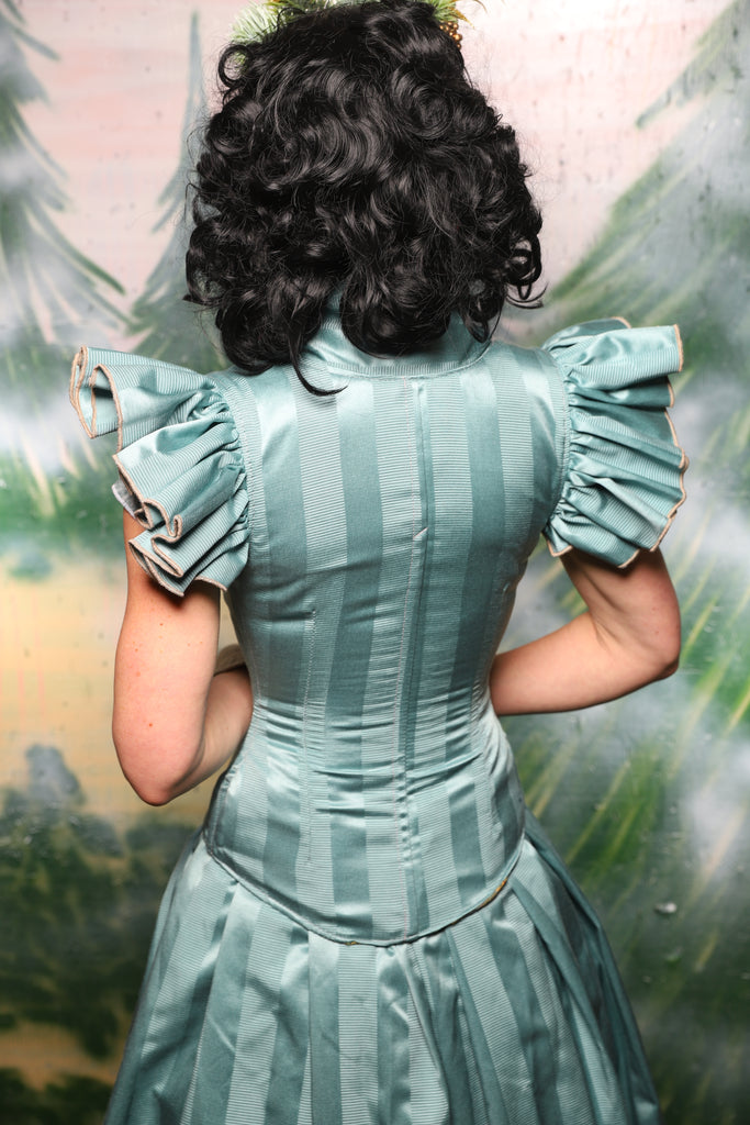 Petite Vixen Corset w/Ruffles in Frostmint Matte & Satin Stripe- Day 6 of 12 Days of Damsel Christmas 2025