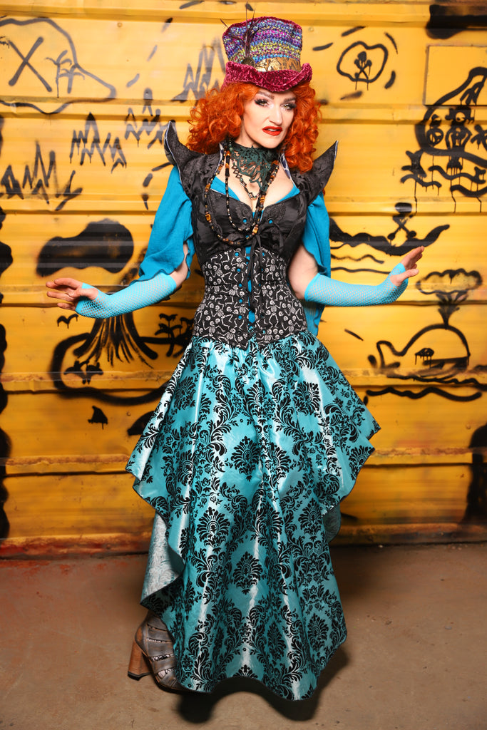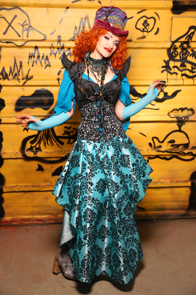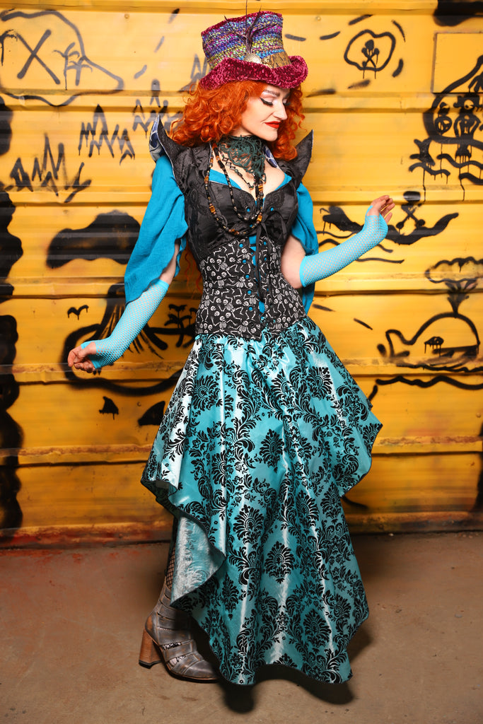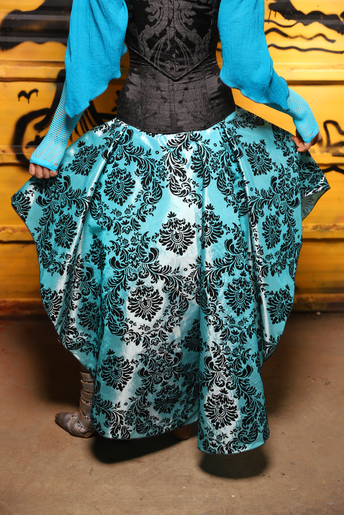 04. Crescent Skirt in Aquamarine & Black Filigree - The Parlay and Promenade Collection