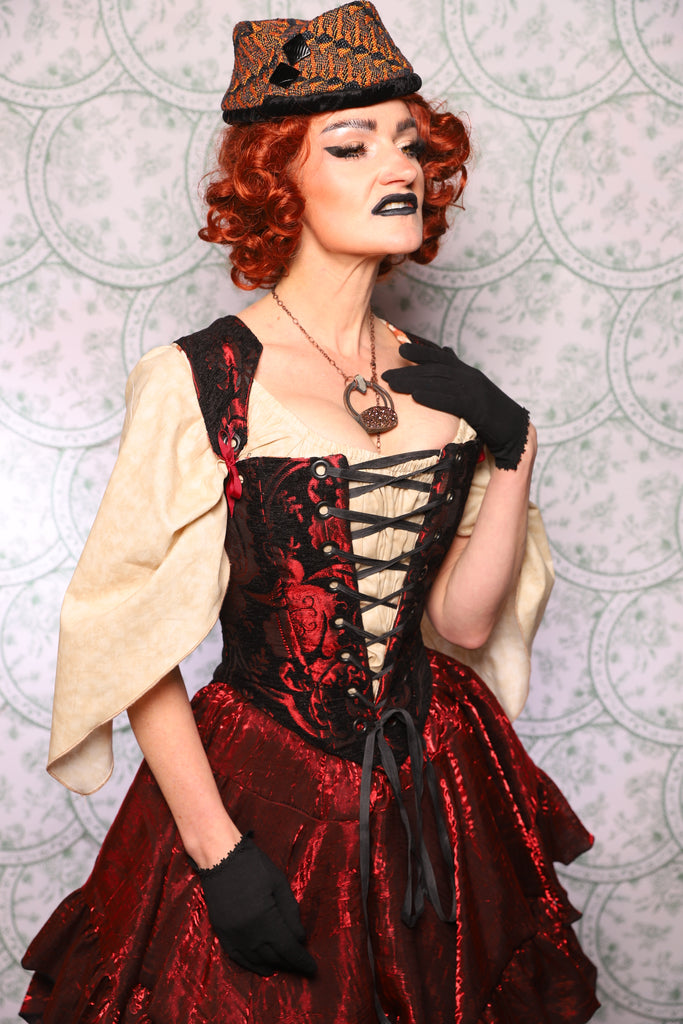 13. Elizabethan Corset In Crimson And Black Medallion - The Tudor Tarot Collection