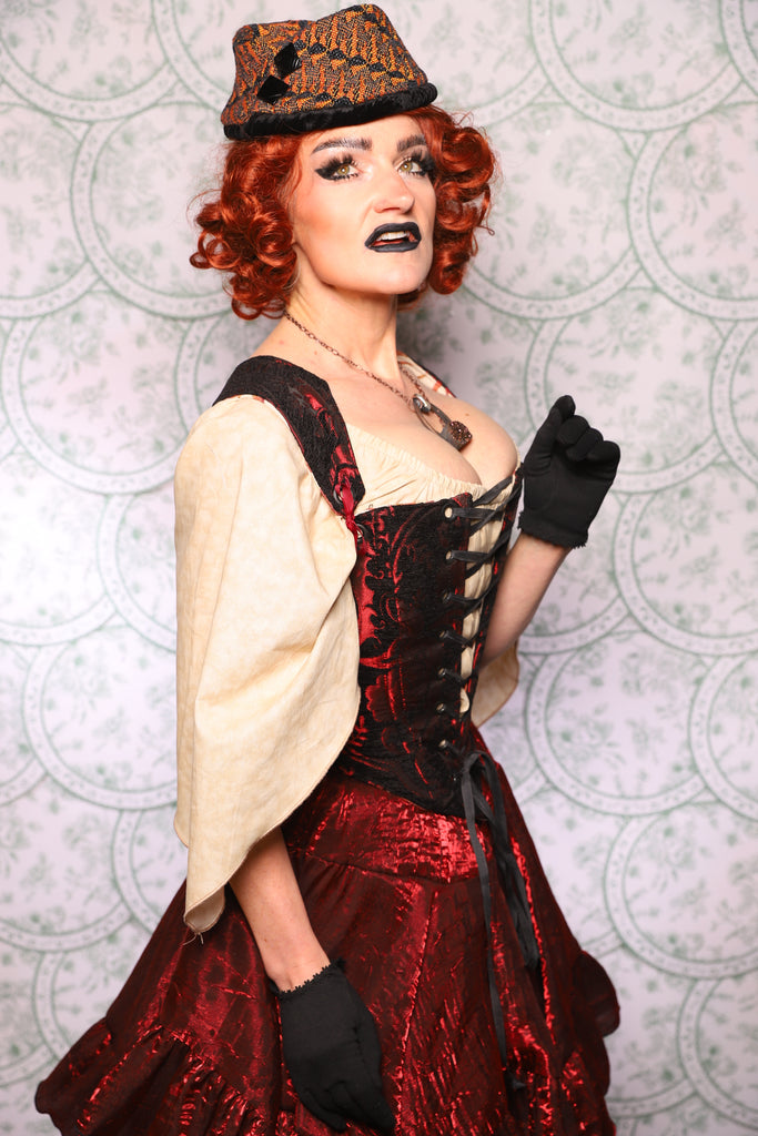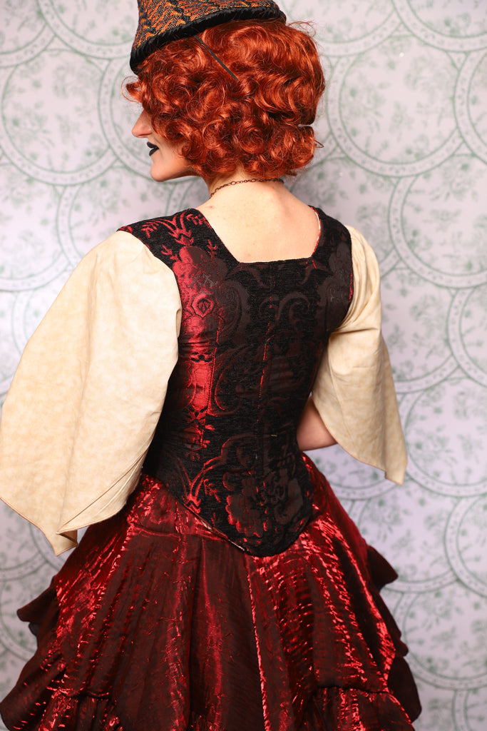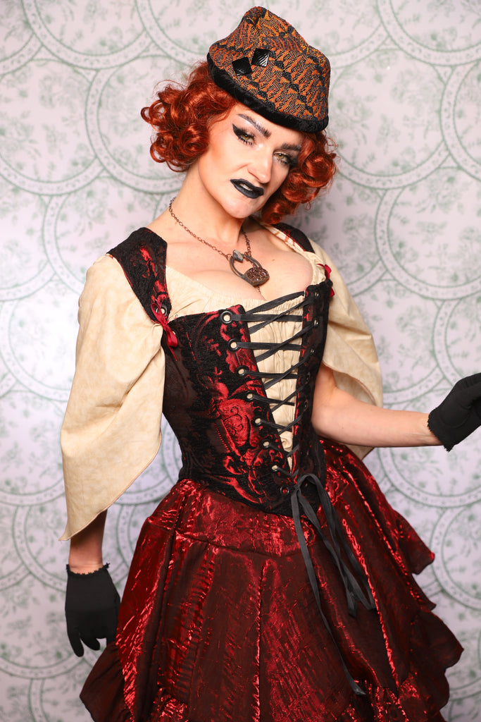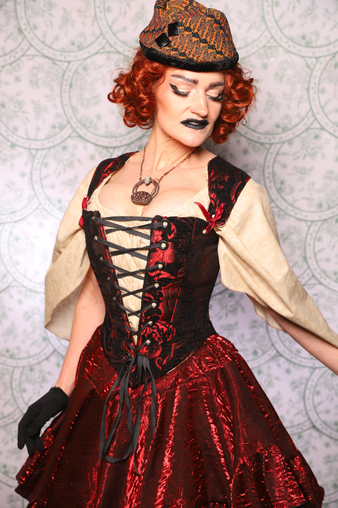This corset was designed to create a dramatic, lifted, Elizabethan silhouette while still feeling wearable, supportive, and beautifully balanced on the body.