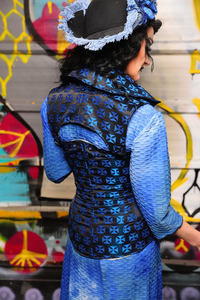 14. Keyhole Vixen Corset in Azure Heraldry - The Dark Waters Collection