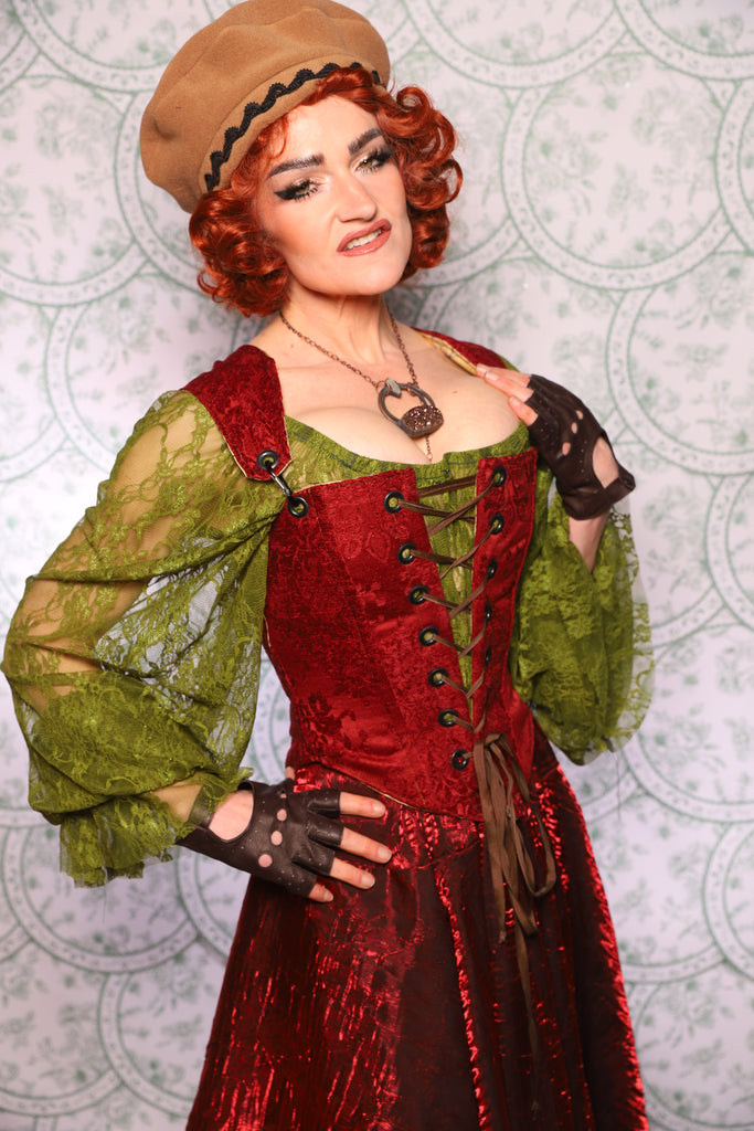 A silhouette inspired by Tudor and Elizabethan garments, rather than Victorian long-line corsetry