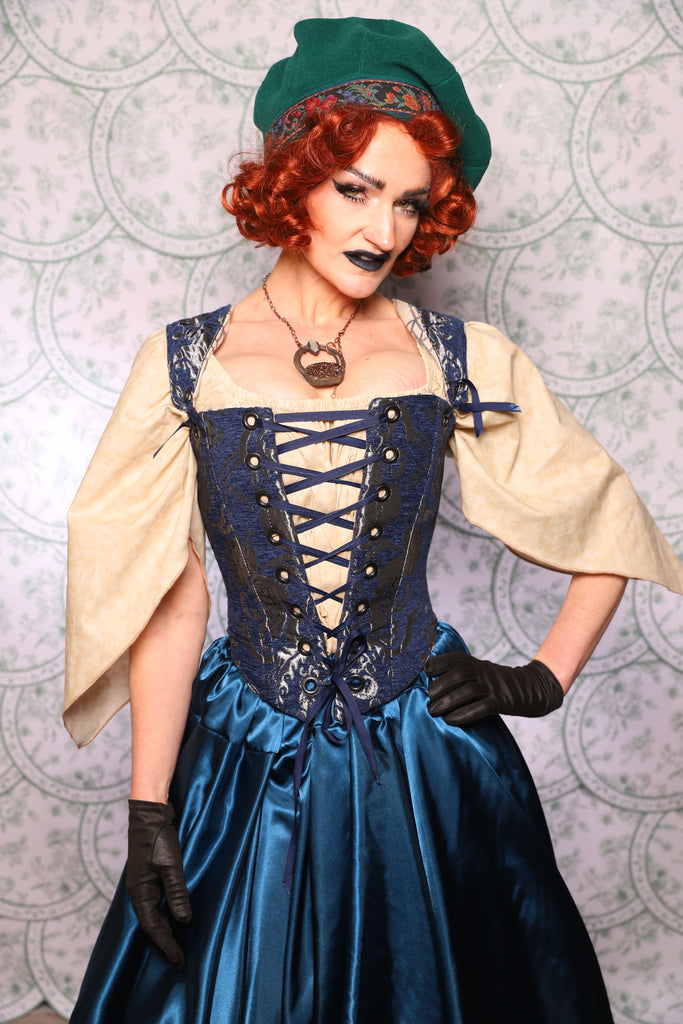 15. Elizabethan Corset In Navy And Silver Medallion - The Tudor Tarot Collection