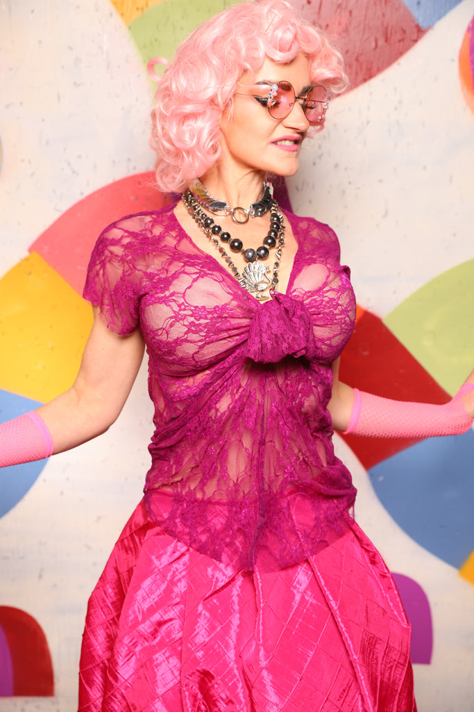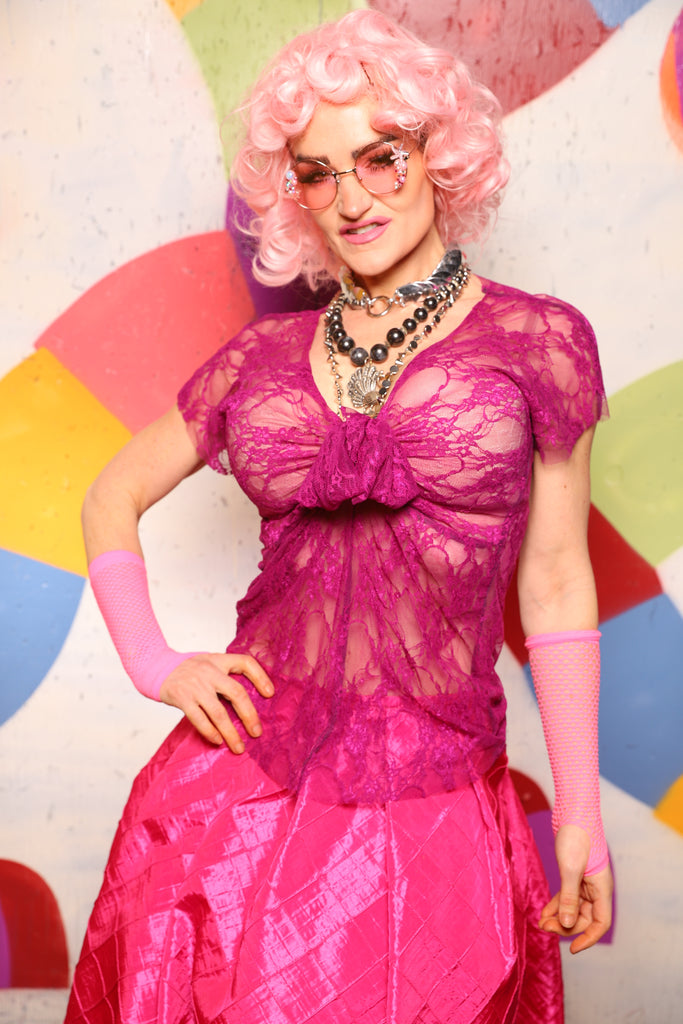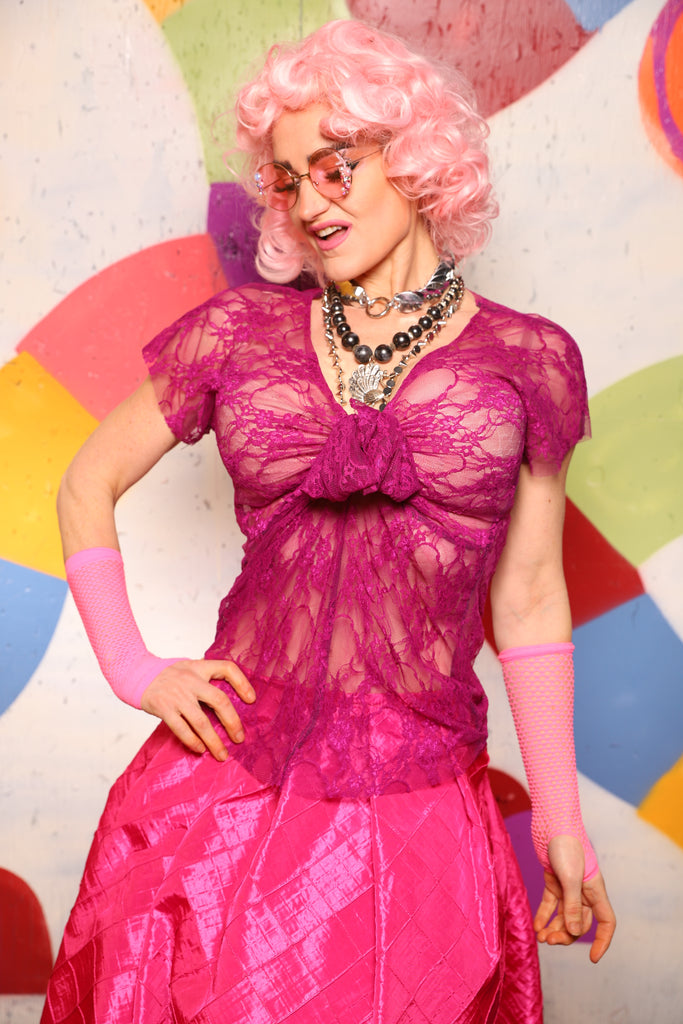 15. Knotty Blouse in Fuchsia Stretch Lace - The "Confections of the Heart" Collection