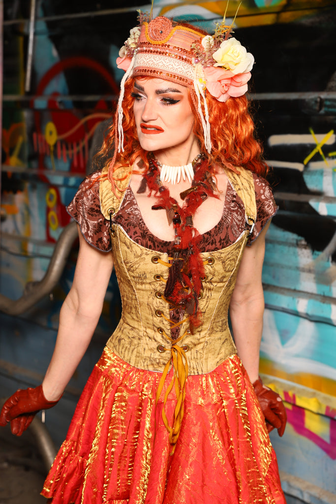 18. Maiden Bodice Corset in Ink-Drawn Tigers - The "Ensembled in Embers" Collection