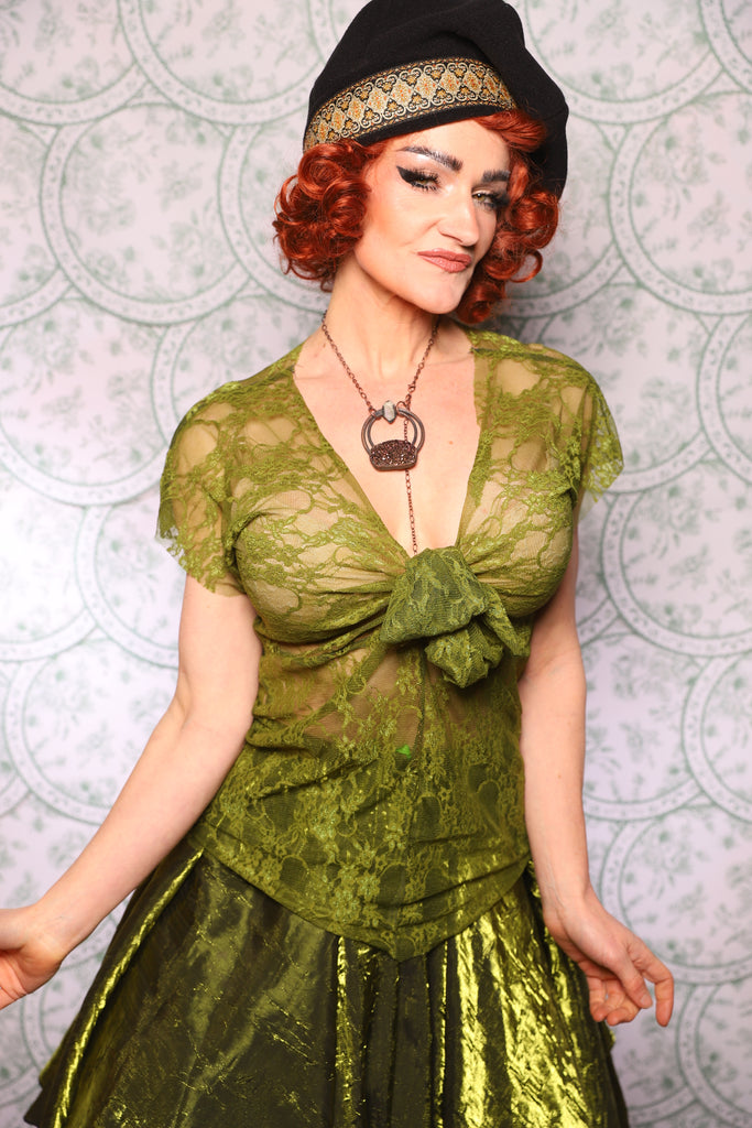 24. Knotty Blouse In Olive Stretch Lace - The Tudor Tarot Collection