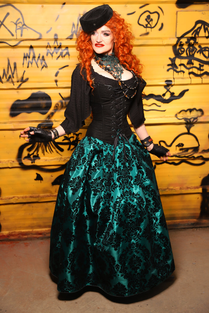 38. Tulip Skirt in Emerald & Black Filigree - The Parlay and Promenade Collection