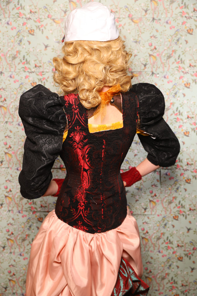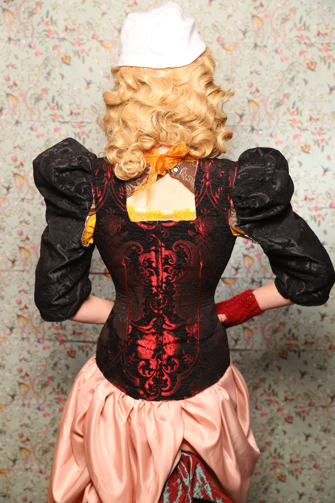 43. Marie Bodice Overbust in Crimson and Black Medallion - March of the Ides Collection