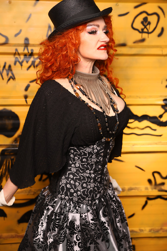 43. Wench in Black Damask w/Front Panels in Dancing Skeleton - The Parlay and Promenade Collection