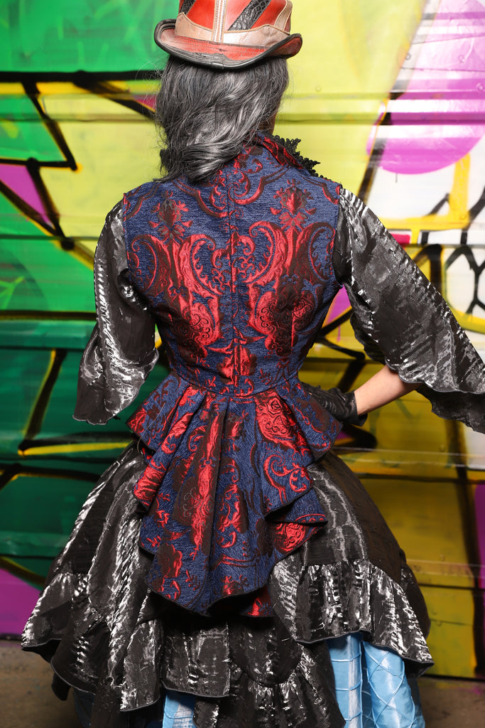Meet the Wren Vest — a freshly reimagined take on our classic Guinevere, cropped right at the rib cage for that “oh… we’re being bold today” kind of silhouette. She’s been dressed up with a soft ruffle and a delicately trimmed collar that gives just enough Victorian special sauce to make you feel like you should be writing letters by candlelight… or starting rumors at a garden party.