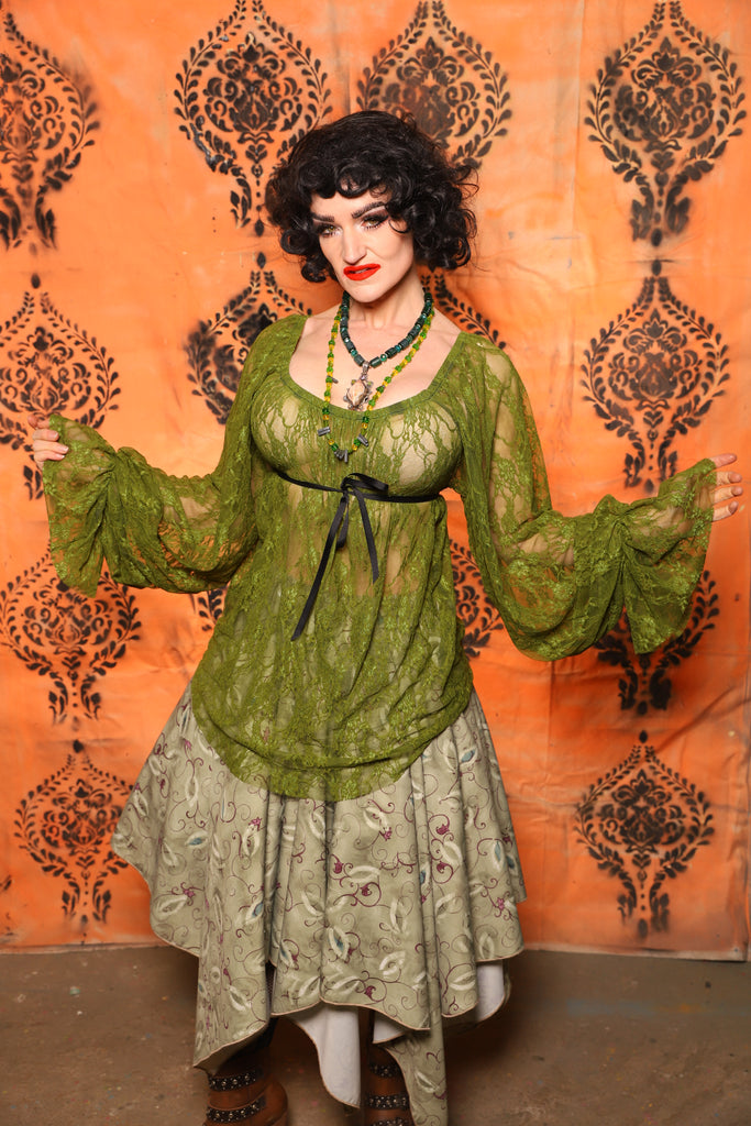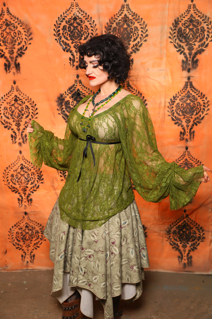 Classic Blouse with Long Sleeves in Olive Green Stretch Lace - Day 8 of 13 Days of Halloween