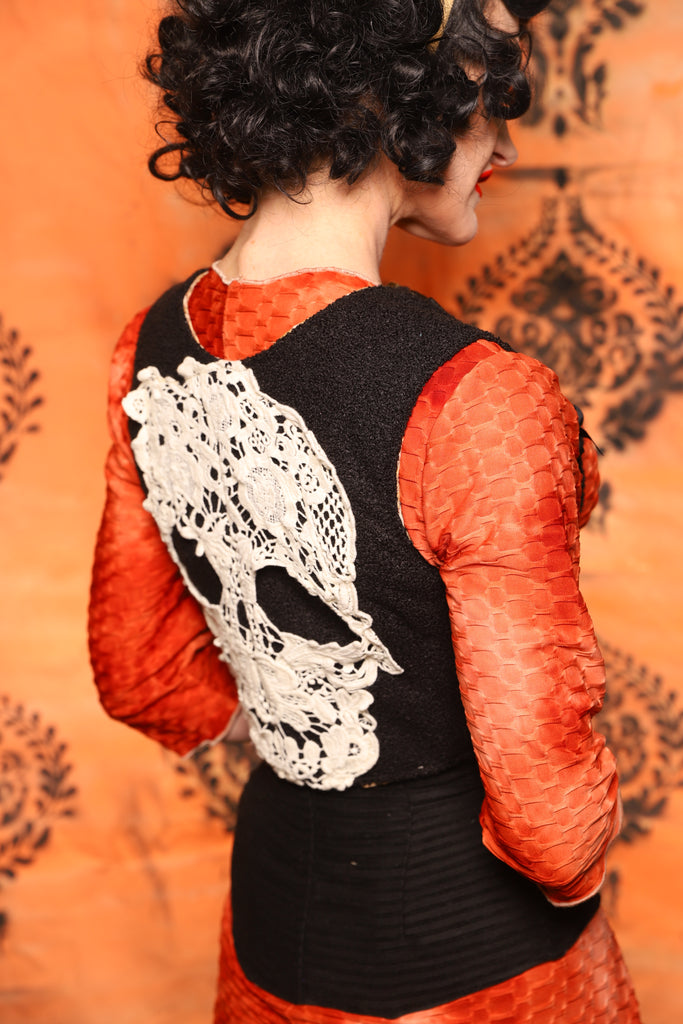 Cropped Dapper Vixen in Black Teddy Soft Solid & Skull Lace! Day 7 of 13 Days of Halloween 2025 (Copy)
