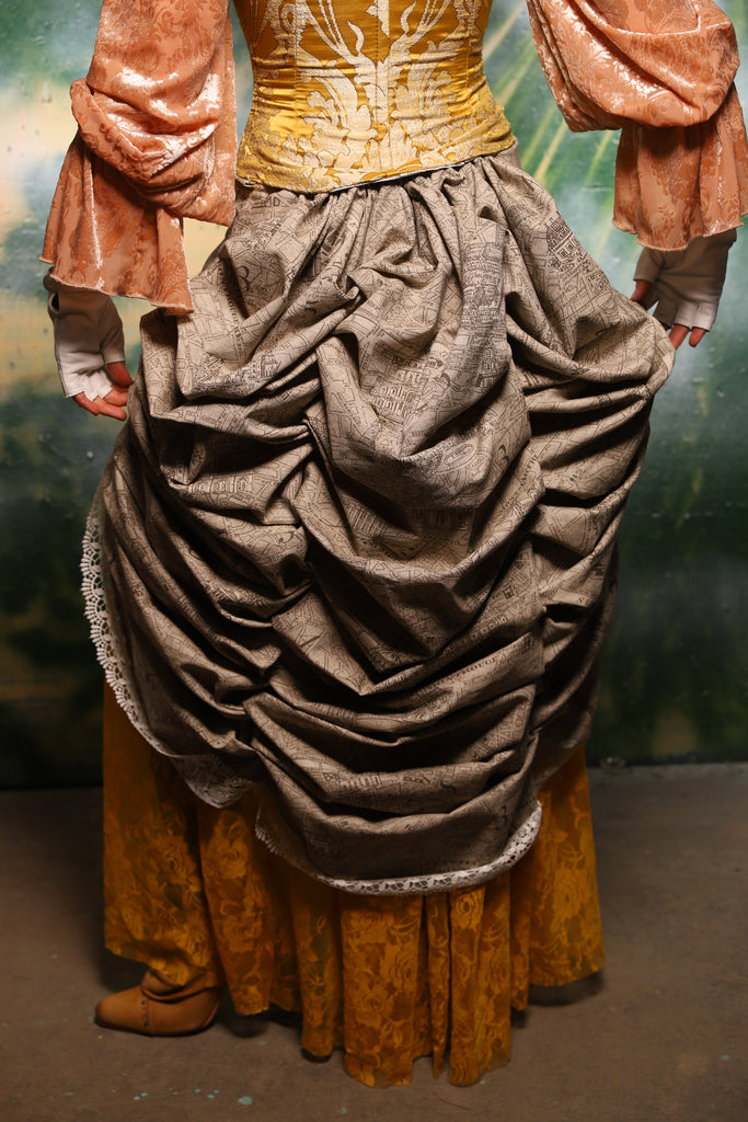 *Bustles look gorgeous with our corsets, or any others for that matter. However, because of all the volume in the back it IS good to make sure you wear them with something very fitted up top!