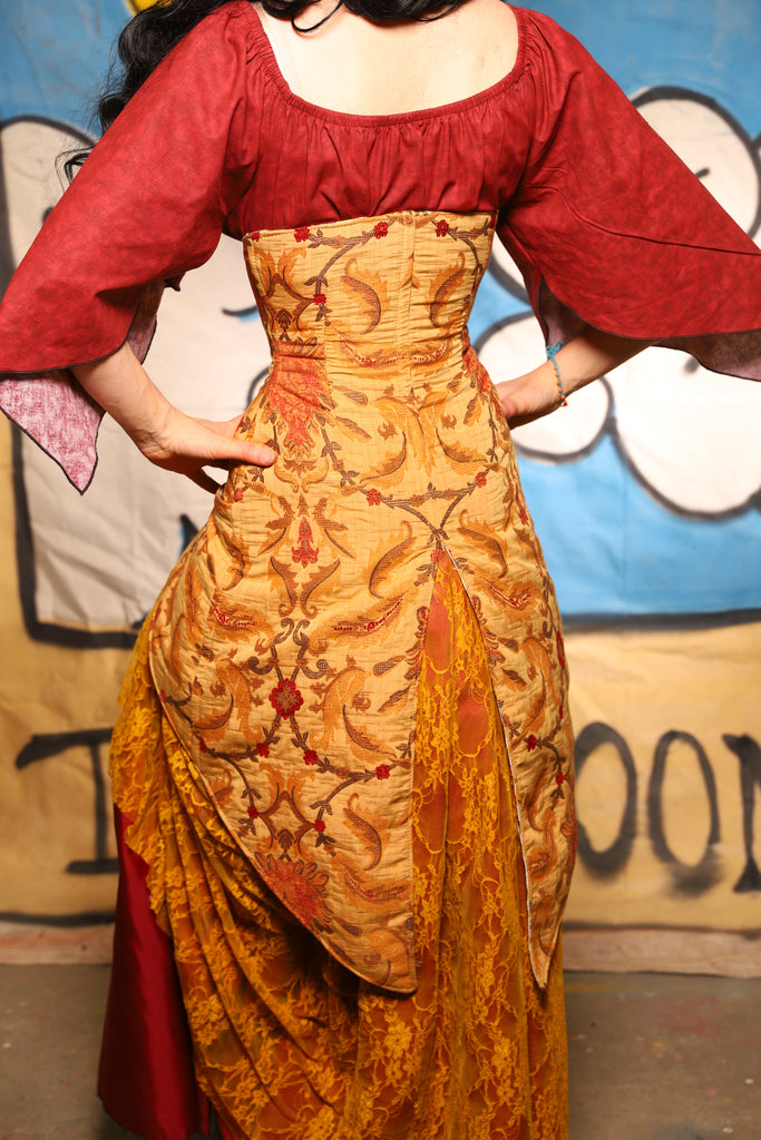 Petite Siren Corset w/ Pockets in Cornbread Floral - The Goldenberry Collection